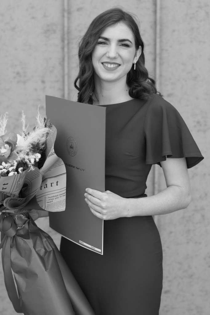Jedna ekstrovertna, vedra i entuzijastična osoba koja bi kad bi mogla spavala tri sata dnevno, da joj tijelo to može izdržati. Diplomirana anglistica i kroatistica koja osim čitanja knjiga u budućnosti planira poučavati ostale engleski i hrvatski jezik. Za početak dosta. 😉